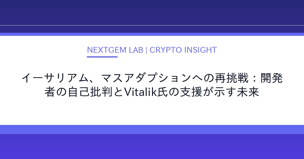 イーサリアムのマスアダプションに向けた課題とVitalik氏の動向を徹底分析。開発者の自己批判、ステーキング需要の低下、そしてVitalik氏の慈善寄付がイーサリアムの未来にどう影響するかを解説します。