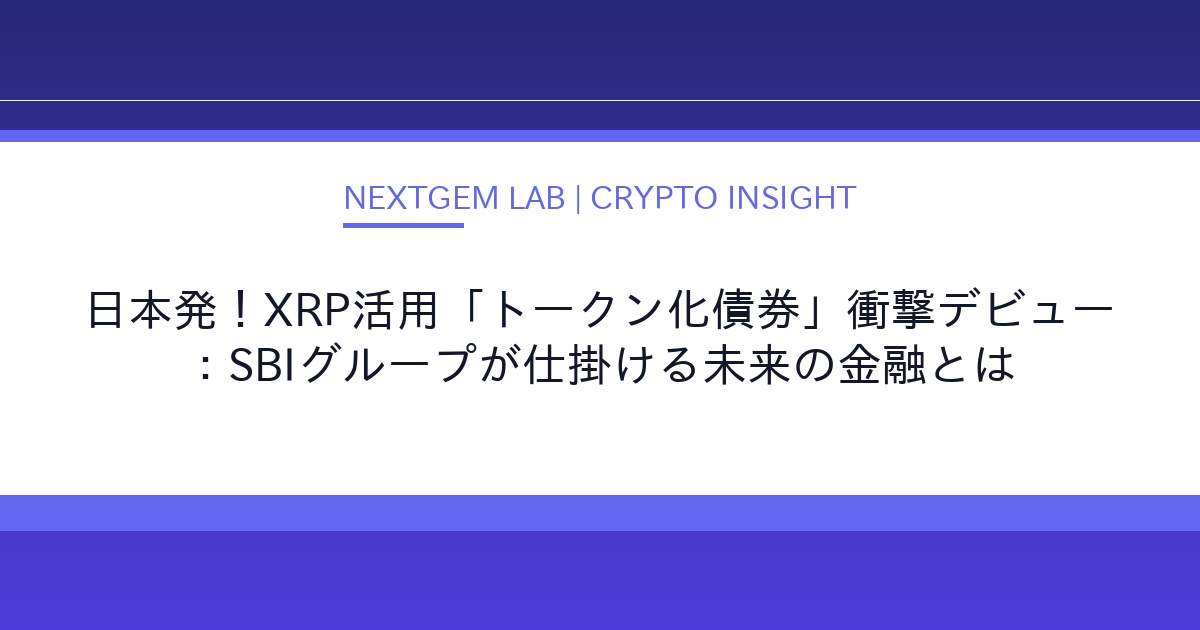 SBIグループが日本国内でXRPを活用したトークン化債券を発行開始。仮想通貨投資家必見の、この革新的な金融商品の詳細、日本市場への影響、そして今後の展望をNextGem Labが徹底解説します。
