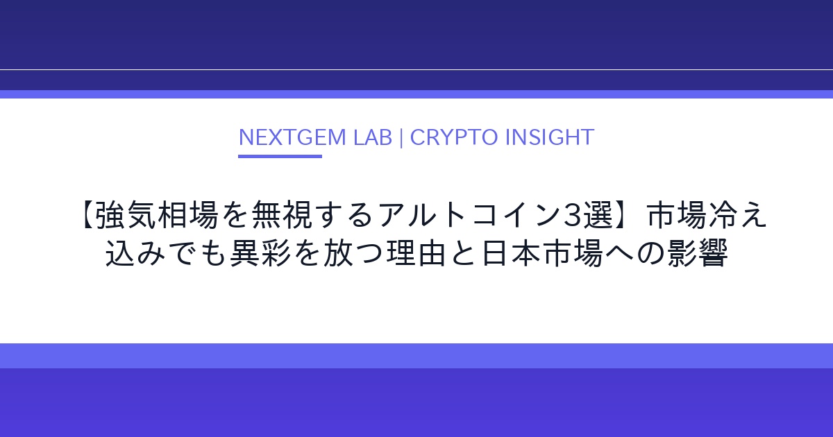仮想通貨市場全体が低迷する中、ビットコインキャッシュ(BCH)など、強気相場を「無視」するような異例の動きを見せるアルトコインが存在します。NextGem Labが、その背景にあるプロジェクトの強み、投資家心理、そして日本市場への潜在的な影響を徹底解説します。